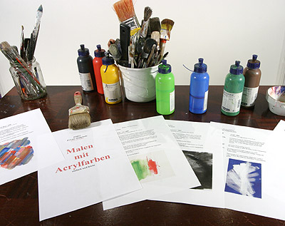 Angeboten wird die Acrylmalerei; sie bietet - im Gegensatz zur Ölmalerei einfacheren Technik - gerade Einsteigern viele Vorteile. Acrylfarben sind vielseitig einsetzbar und ermöglichen es, sowohl Aquarell- als auch Ölfarben nachzuahmen. Für den Einstieg in die Malerei ist nur eine Hürde zu nehmen - und zwar die Überwindung auf einem weißen Blatt Papier einfach loszumalen.